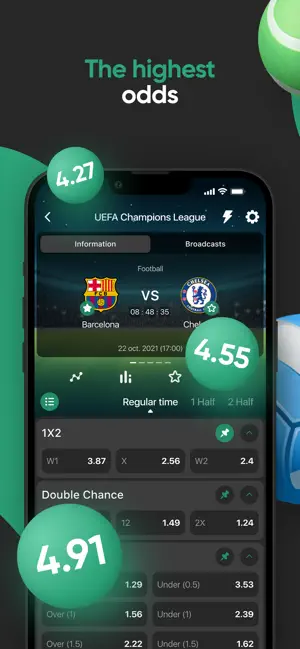 The app uses the traditional type of bet listings: events are presented as a table of odds. Main outcomes—usually the overall match result—are displayed in the match list. To view a detailed game listing, open it in expanded view. There you can select from dozens of markets and use basic sorting.