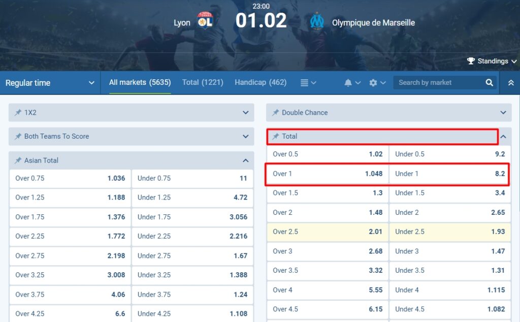 Example of a winning bet: In Round 4 of the English Premier League, Leicester hosted West Ham and lost 0–3. In this case, the “Team 2 Over 1” bet wins because the goal difference exceeded one.